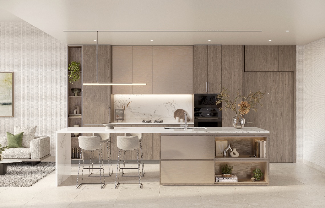 Scheduled for completion in Q2 2028, it offers a diverse range of residential unit types, from 1-bedroom to 3-bedroom apartments. A wealth of communal amenities, including a fitness gym, infinity pool, sauna, BBQ area, kids' play area, and shared spa, support residents' comfortable living.